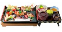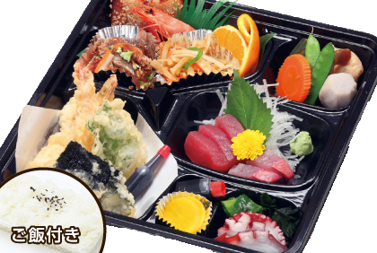 お祝い向けの仕出し料理でお求めやすい価格にて豪華に仕上げ、すべてのラインナップには温かいご飯が付きます。リピーターの多い人気メニューです。かにが入っています。